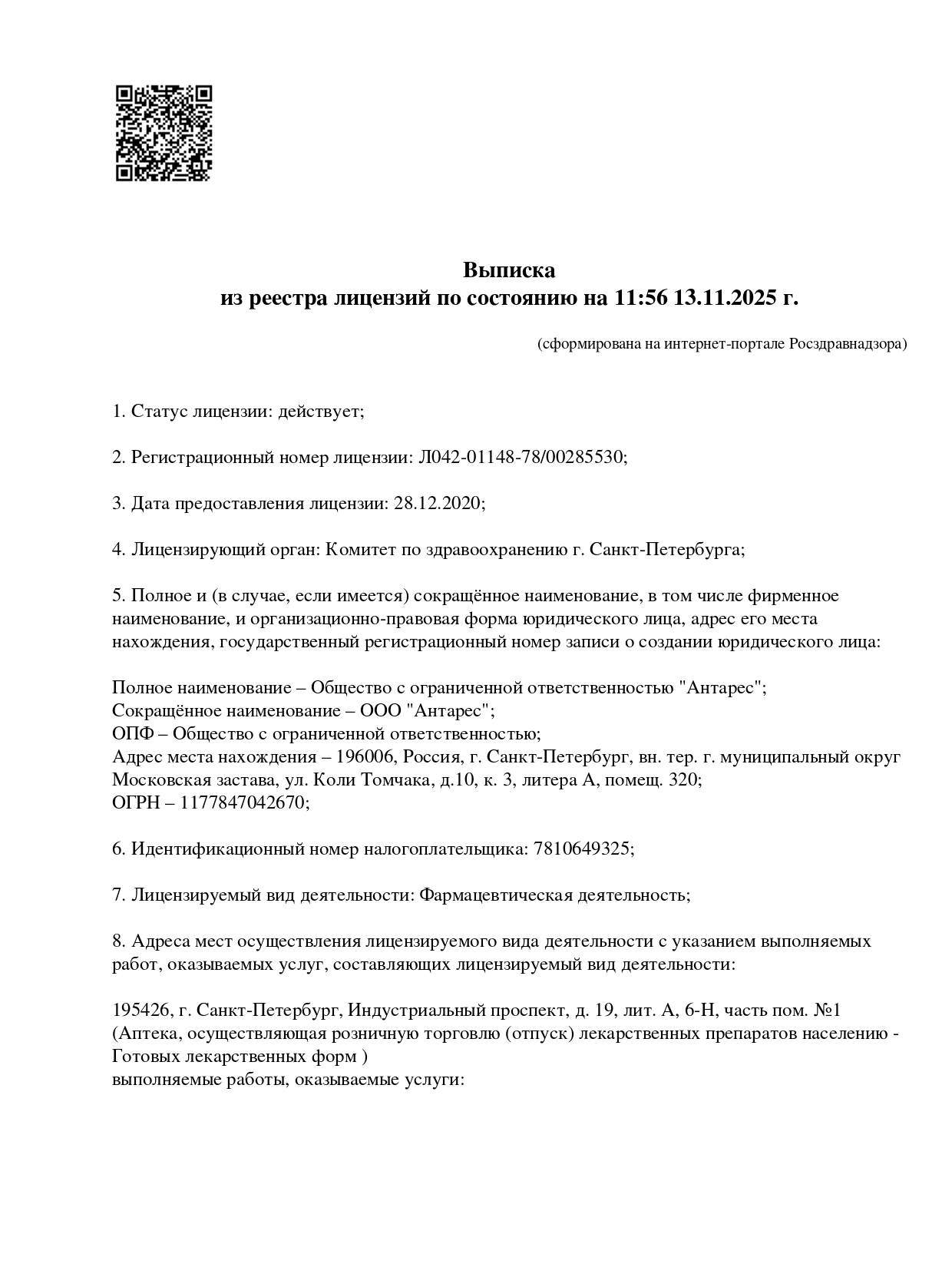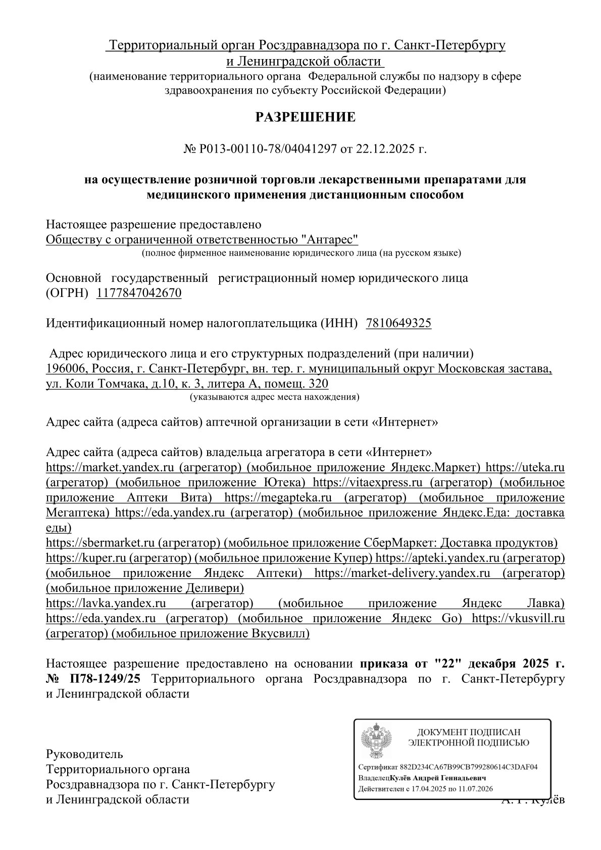Контактные данные специалиста, ответственного за размещение информации о лекарственных препаратах на сайте аптеки Вита: Назарова Валерия Вадимовна, +7 (927) 655-03-28
