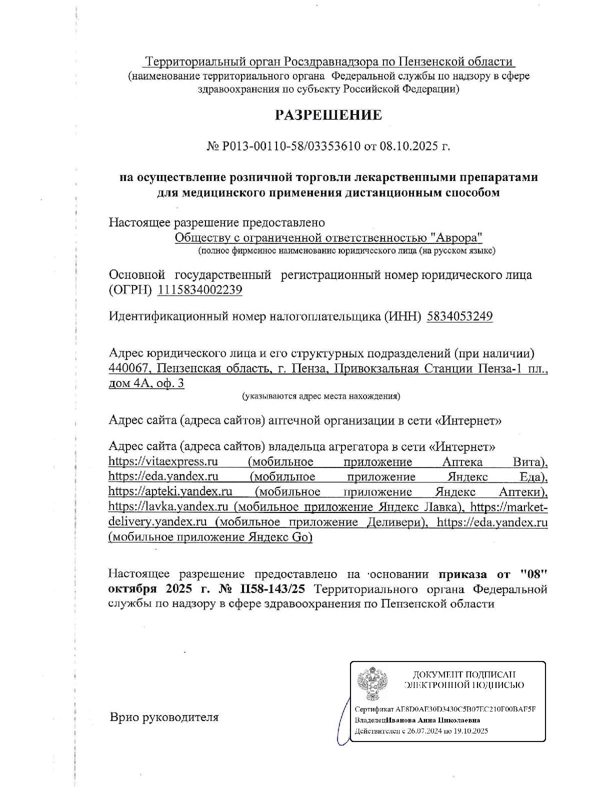 Сайт территориального органа: 58reg.roszdravnadzor.gov.ru.