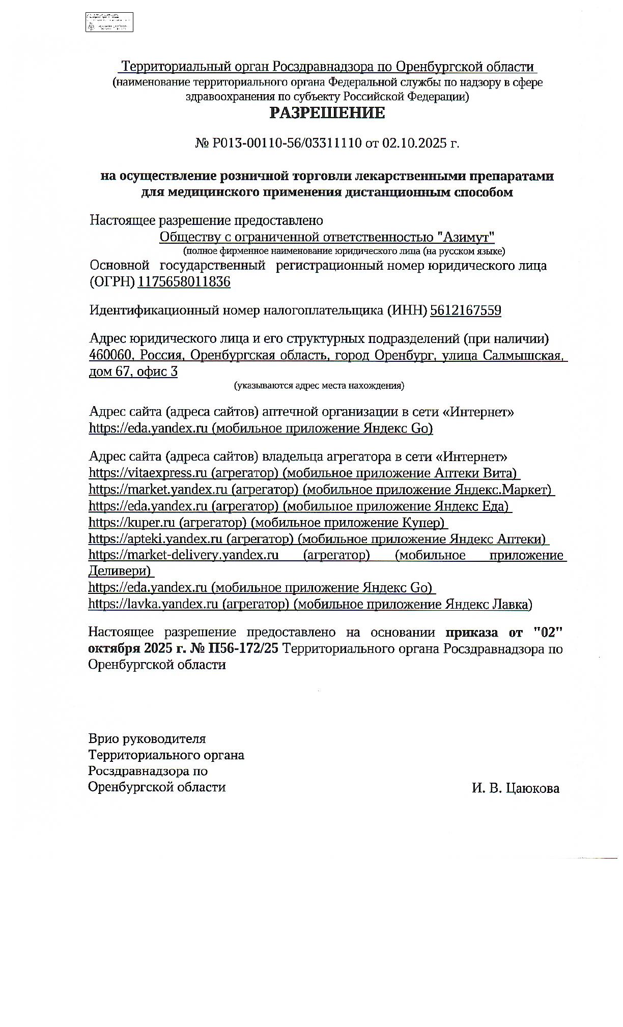 Контактные данные специалиста, ответственного за размещение информации о лекарственных препаратах на сайте аптеки Вита: Назарова Валерия Вадимовна, +7 (927) 655-03-28