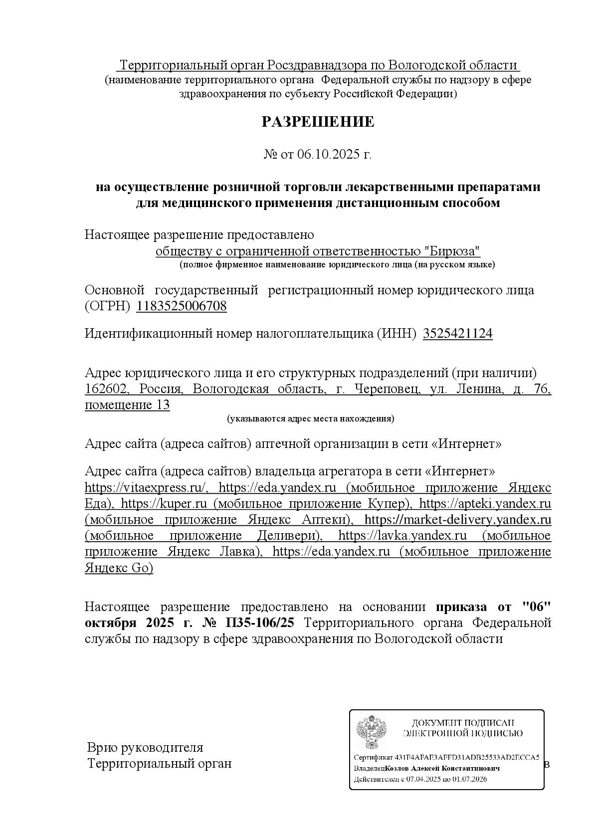 Сайт территориального органа: https://35reg.roszdravnadzor.gov.ru/