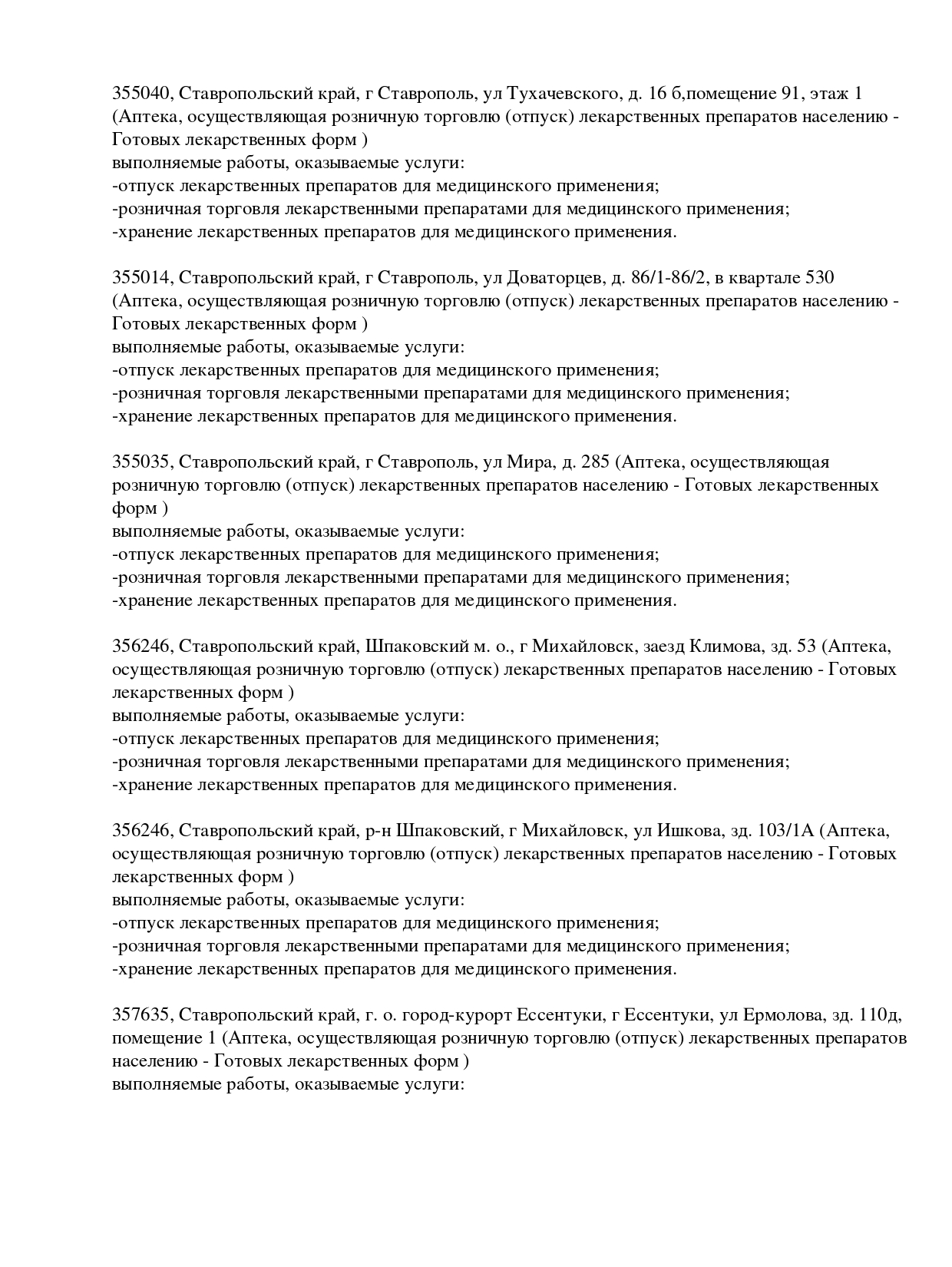 355003, Ставропольский край, Ставрополь г, Ленина ул, дом 301. Режим работы: с 08:00 до 22:00