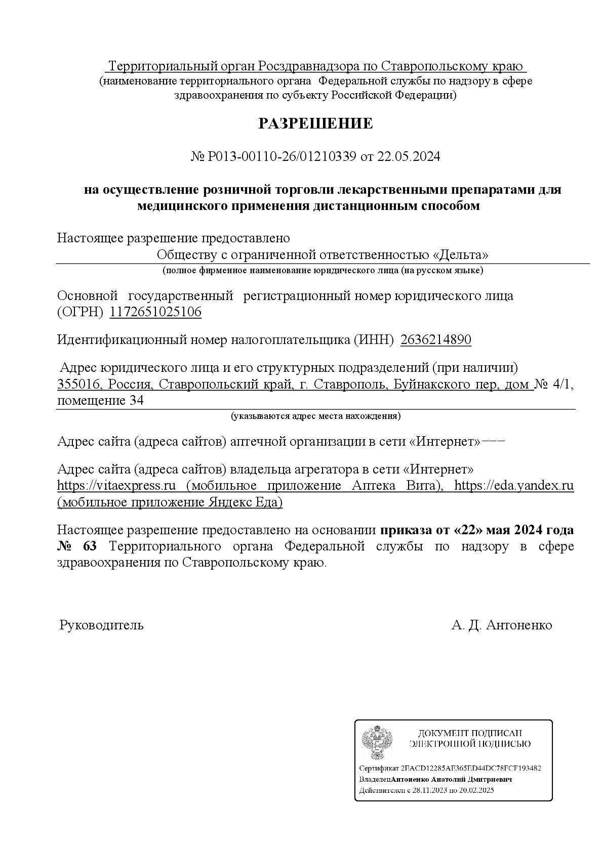 Руководитель территориального органа: Антоненко Анатолий Дмитриевич
