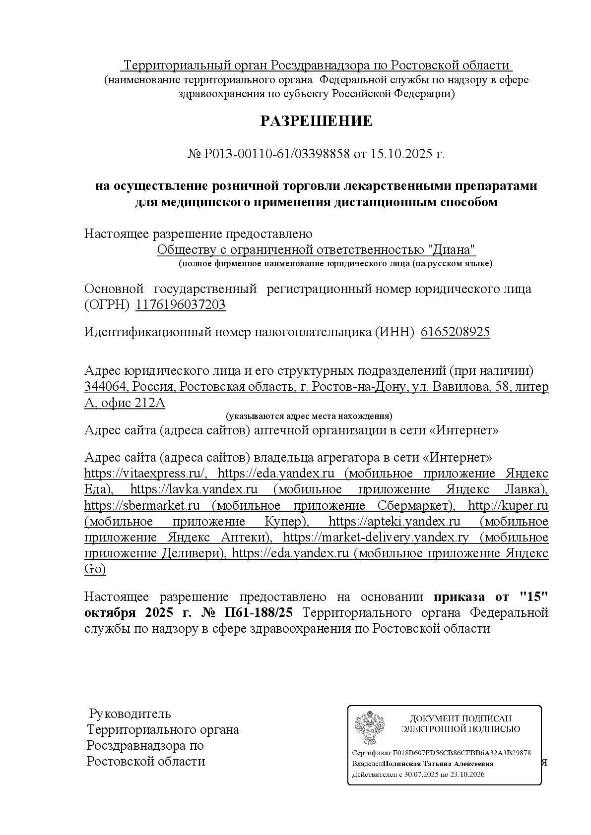 Сайт территориального органа: 61reg.roszdravnadzor.gov.ru