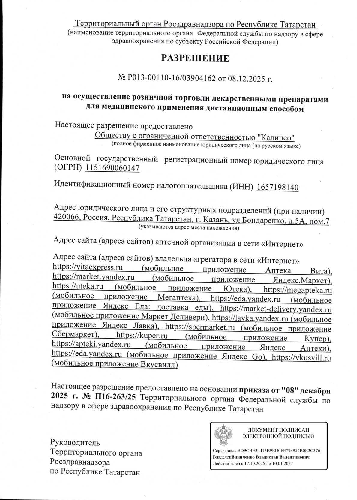 Сайт территориального органа: 16reg.roszdravnadzor.gov.ru