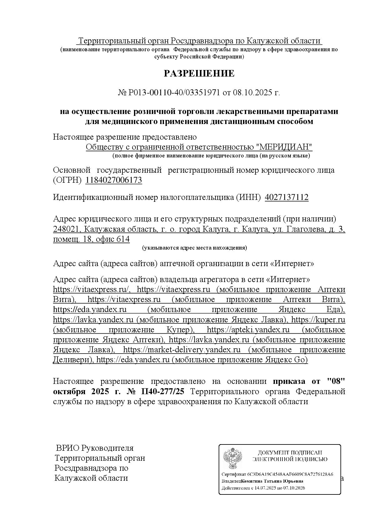 Контактные данные специалиста, ответственного за размещение информации о лекарственных препаратах на сайте аптеки Вита: Назарова Валерия Вадимовна, +7 (927) 655-03-28