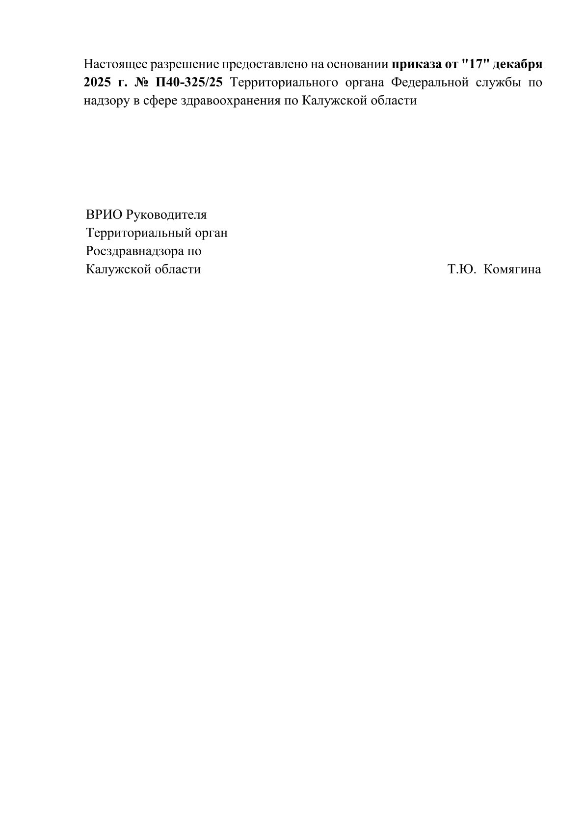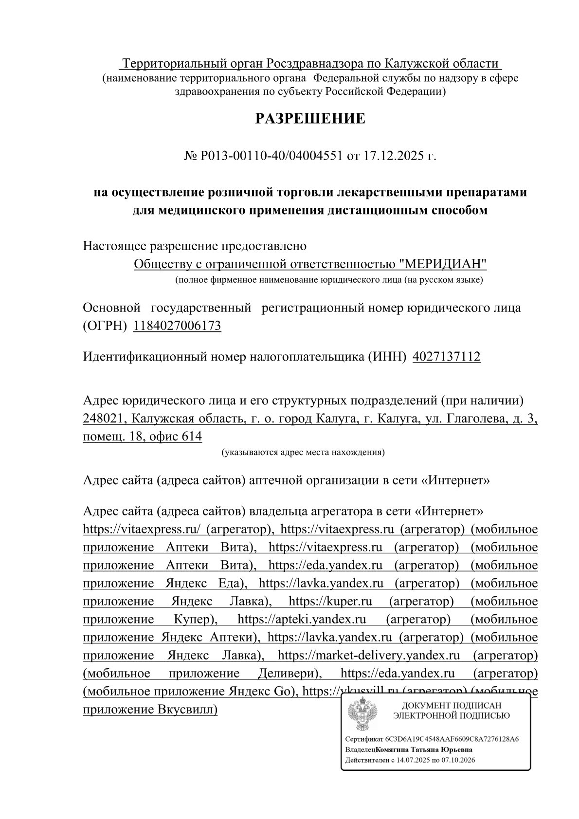 Сайт территориального органа: https://40reg.roszdravnadzor.gov.ru/