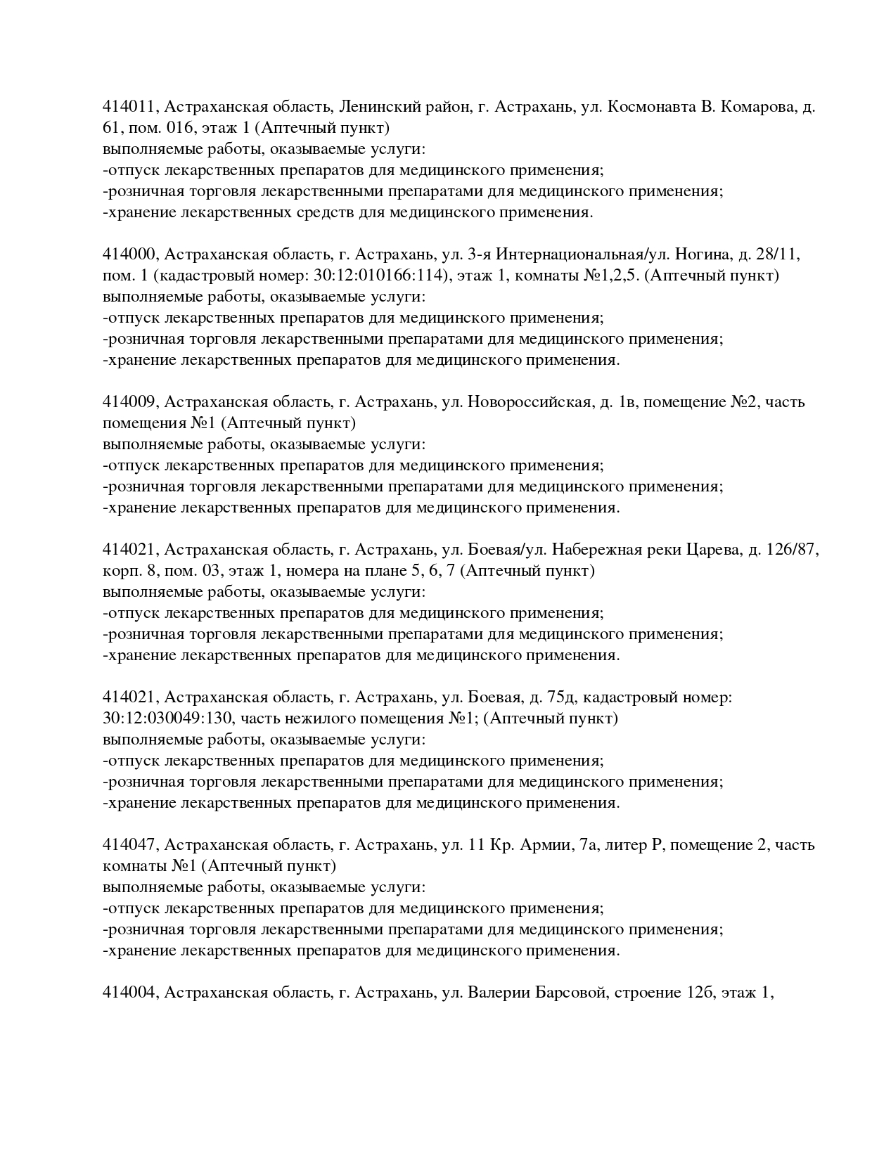 414056, Астраханская обл, Астрахань г, Анри Барбюса ул, дом 17, помещение 075. Режим работы: Пн.-Пт. с 08:00 до 21:00, Сб.-Вс. с 08:00 до 20:00