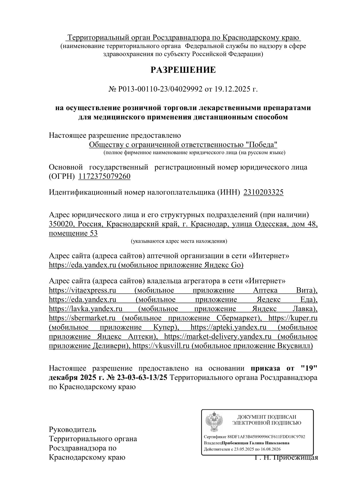 Сайт территориального органа: 23reg.roszdravnadzor.gov.ru