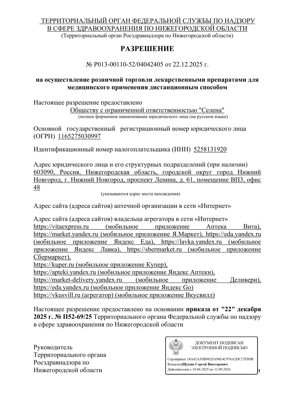 Сайт территориального органа: 52reg.roszdravnadzor.gov.ru