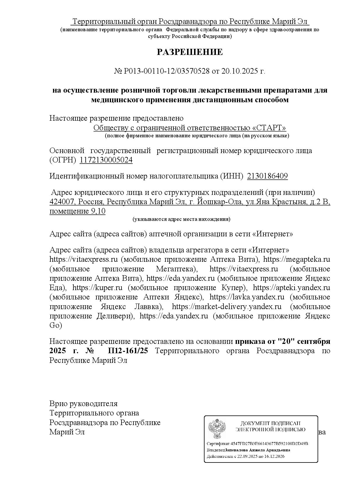 Контактные данные специалиста, ответственного за размещение информации о лекарственных препаратах на сайте аптеки Вита: Назарова Валерия Вадимовна, +7 (927) 655-03-28