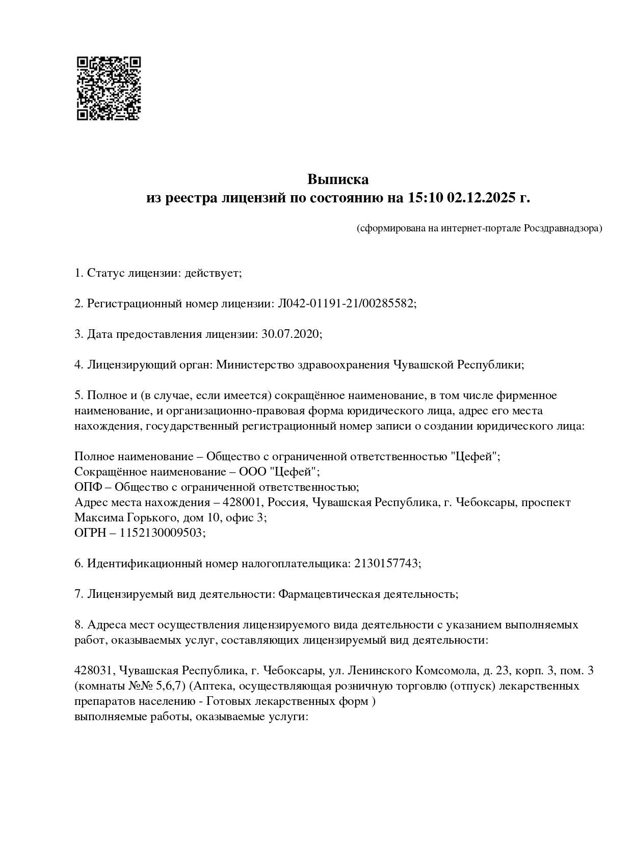 Территориальный орган Росздравнадзора по Чувашской Республике
