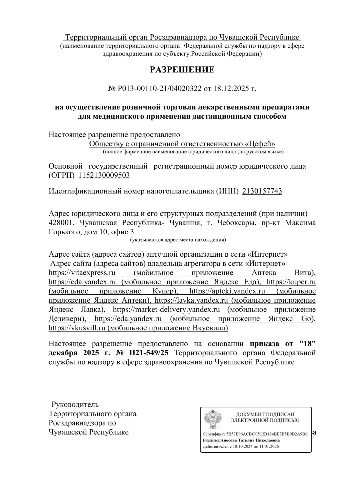 Сайт территориального органа: 21reg.roszdravnadzor.gov.ru