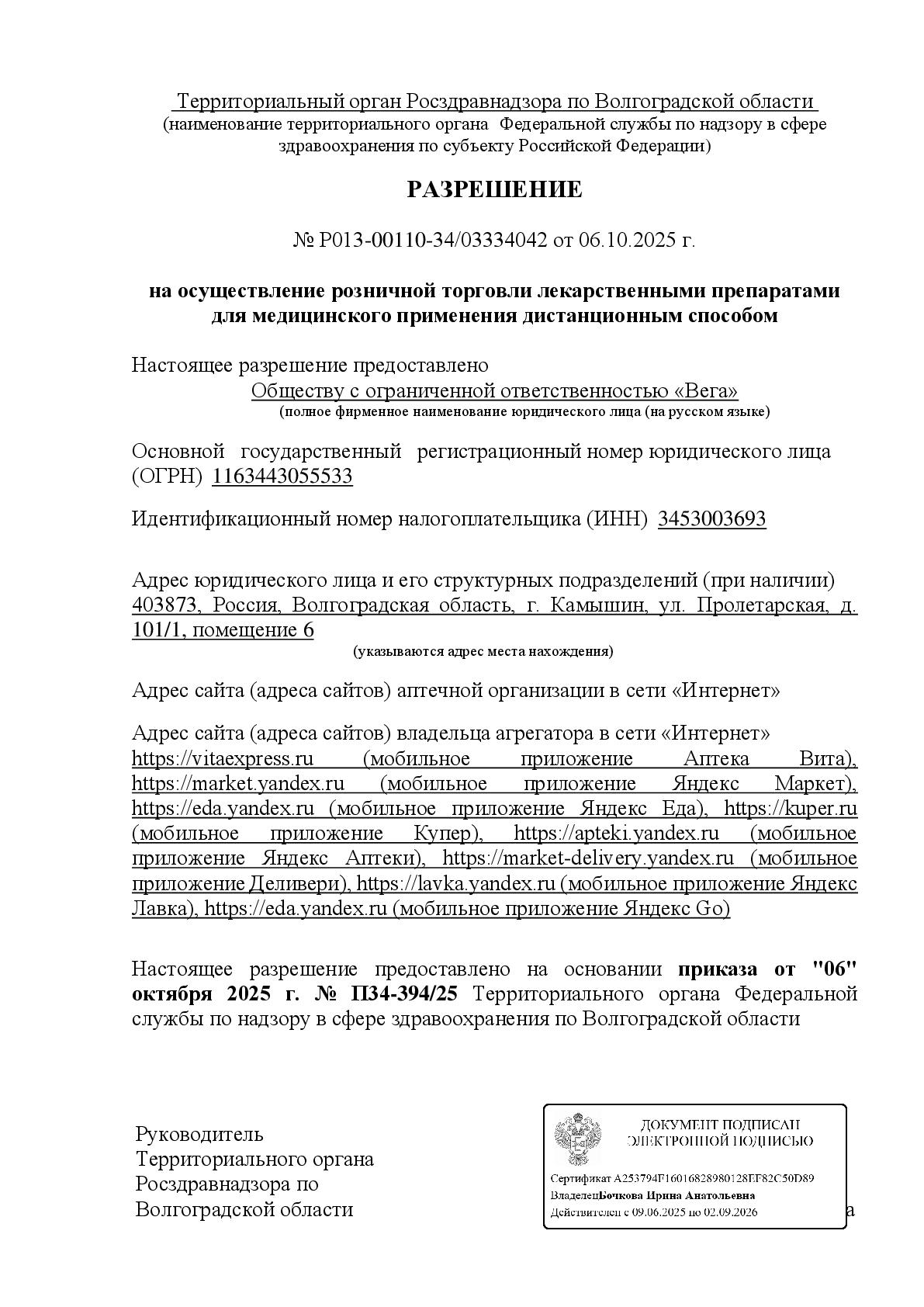 Контактные данные специалиста, ответственного за размещение информации о лекарственных препаратах на сайте аптеки Вита: Назарова Валерия Вадимовна, +7 (927) 655-03-28
