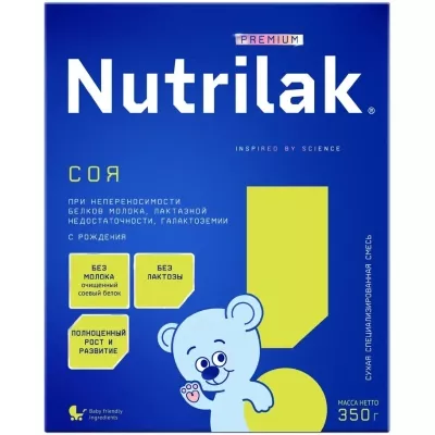 - Соя – при непереносимости молочного белка, лактозы и галактоземии