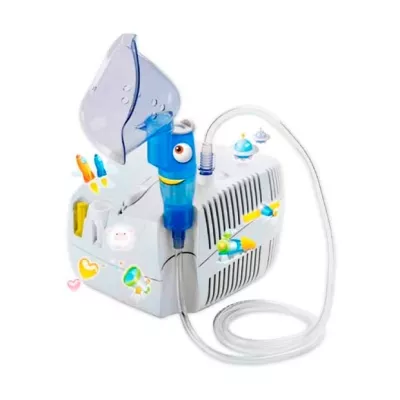 Эти параметры важны для лечения маленьких детей – шум компрессора их не напугает, а яркий дизайн корпуса и игрушки-аксессуары привнесут элемент игры в скучный процесс лечения. Данный небулайзер имеет в комплекте детскую маску и маску для младенцев.