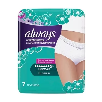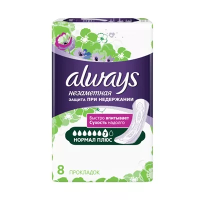 Always Незаметная защита – надежный помощник, позволяющий обеспечить ежедневный комфорт и достойное качество жизни при появлении первых симптомов недержания мочи, а также на время его лечения!»