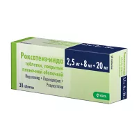Роксатенз-инда таблетки покрыт. п/о 1,25мг+4мг+20мг, №30, КРКА