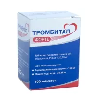 Тромбитал Форте таблетки покрыт. п/о 150мг+30,39мг, №100