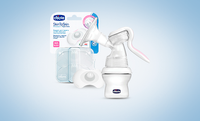 Chicco Natural Feeling Ручной молокоотсос с бутылочкой