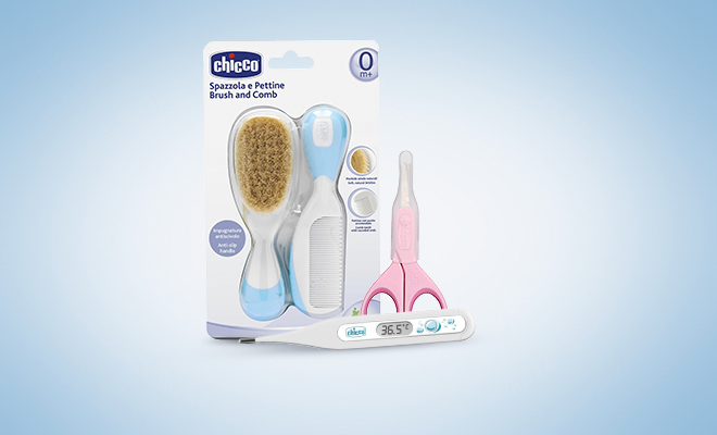 Chicco набор расческа+щётка с натур.щетинками (0+мес) цвет голубой
