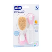 Chicco набор расческа+щётка с натур.щетинками (0+мес) цвет розовый
