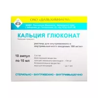Кальция глюконат раствор д/в/в и в/м введ. 100мг/мл, 10мл №10