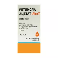 Ретинола ацетат-ЛекТ раствор д/приема внутрь и наружн. прим. масляный 3.44%, 50мл