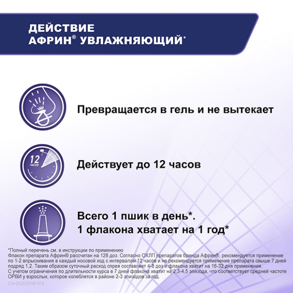 Препарат Африн® увлажняющий не предназначен для применения у детей младше 12 лет.