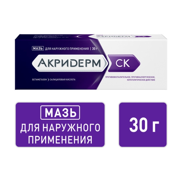 ✓ Цена на Акридерм СК мазь д/наружн. прим., 30г указана на сайте и в мобильном приложении