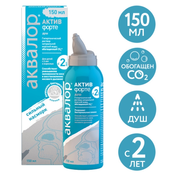 ✓ Купить Аквалор Актив форте душ спрей с 2лет, 150мл можно на сайте, в мобильном приложении и в аптеках Вита
