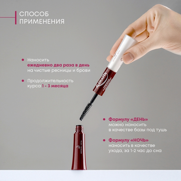 Формула «Ночь»: наносится на чистые ресницы и брови после вечерних гигиенических процедур.