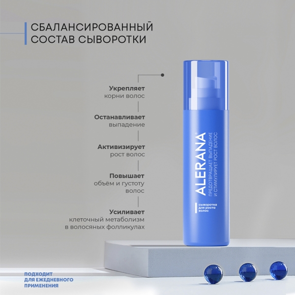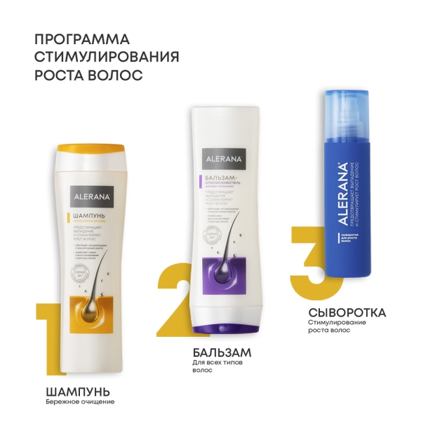 Несмываемая сыворотка ALERANA для стимулирования роста и оздоровления ослабленных волос.