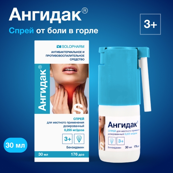 ✓ Подробная инструкция по применению Ангидак спрей д/местн. прим. 0,255мг/доза, 30мл 176 доз