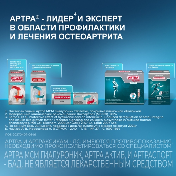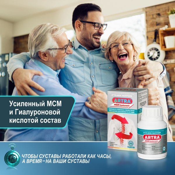 ✓ Цена на Артра МСМ Гиалуроник таблетки покрыт. п/о, №60 указана на сайте и в мобильном приложении