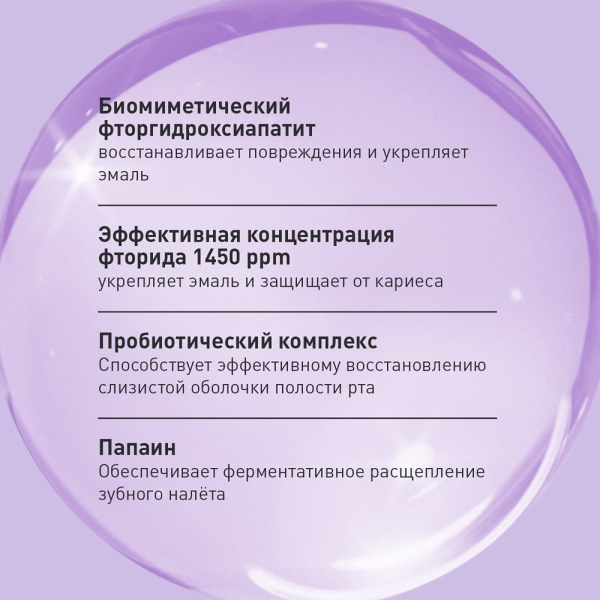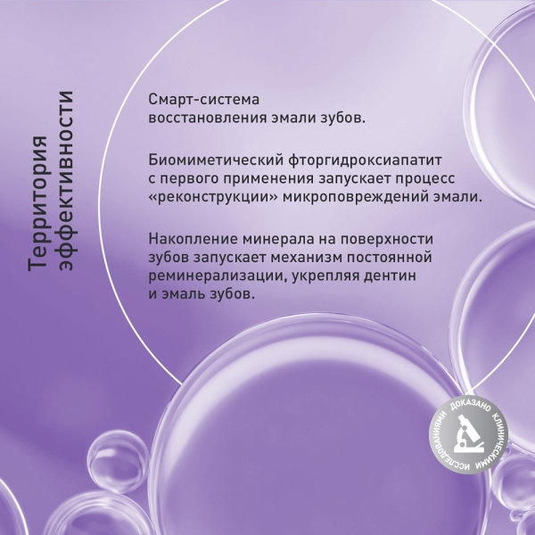Инновационная зубная паста со смарт-системой двухэтапного восстановления эмали, которая обеспечивает зубам длительную защиту и усиливает эффективность компонентов.