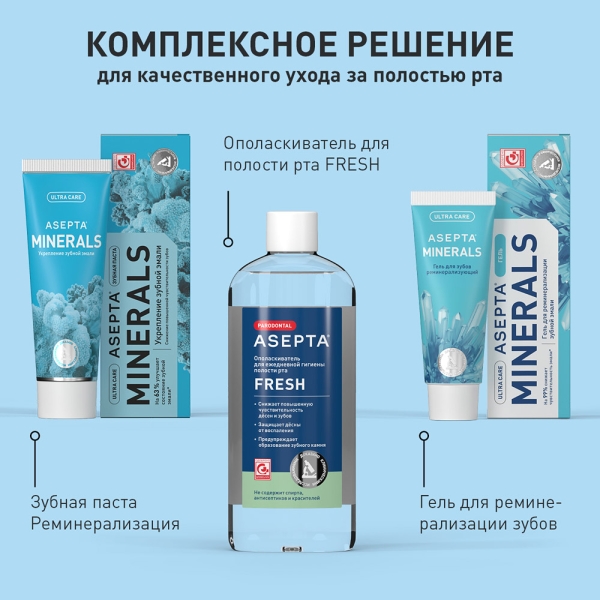 Профессиональная паста для домашнего использования ASEPTA Реминерализация содержит ценные компоненты, которые активно восполняют недостаток минералов в зубной эмали, делая её прочной и выраженно снижая чувствительность зубов.