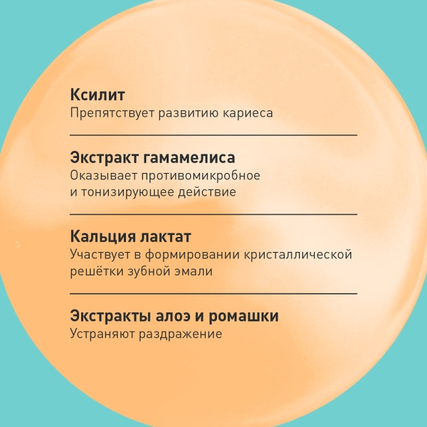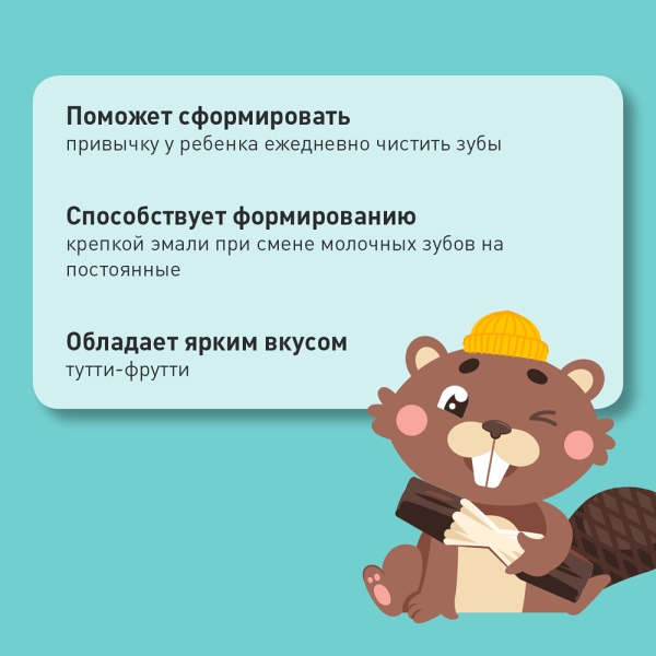 Сбалансированный состав пасты разработан для эффективного удаления налета и защиты эмали как временных, так и постоянных детских зубов. Мягкие абразивы бережно очищают, а натуральные экстракты защищают от кариеса и воспаления.