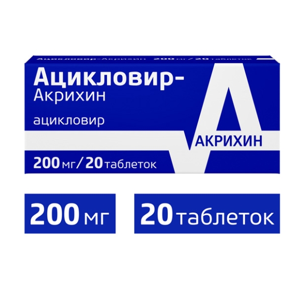 ✓ Подробная инструкция по применению Ацикловир таблетки 200мг, №20, АО Акрихин