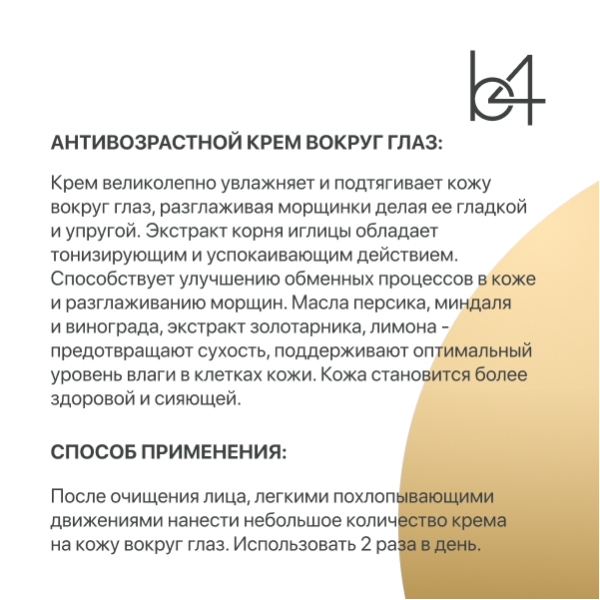 ✓ Подробная инструкция по применению b4 Anti Age Advanсed крем для кожи вокруг глаз для зрелой кожи, 15мл