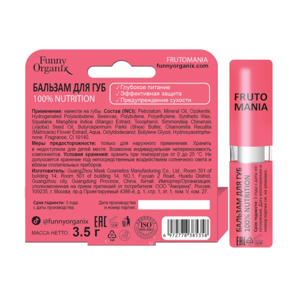 ✓ Подробная инструкция по применению Funny Organix бальзам для губ 100% Nutrition, 3.5г