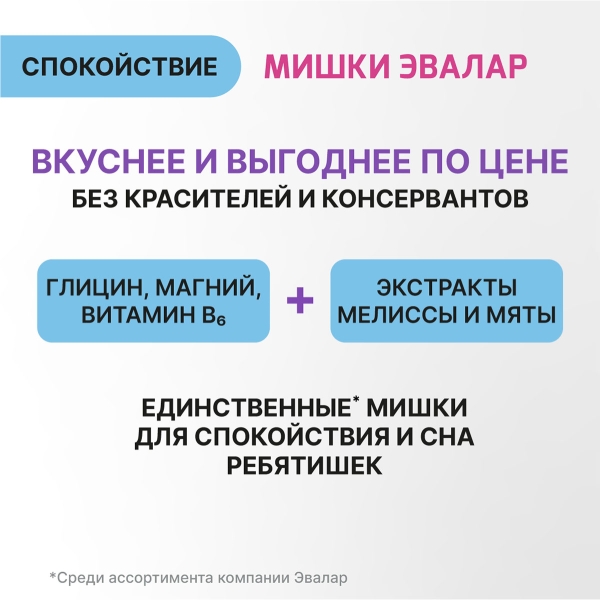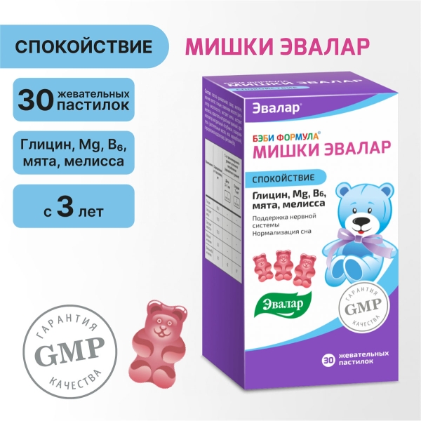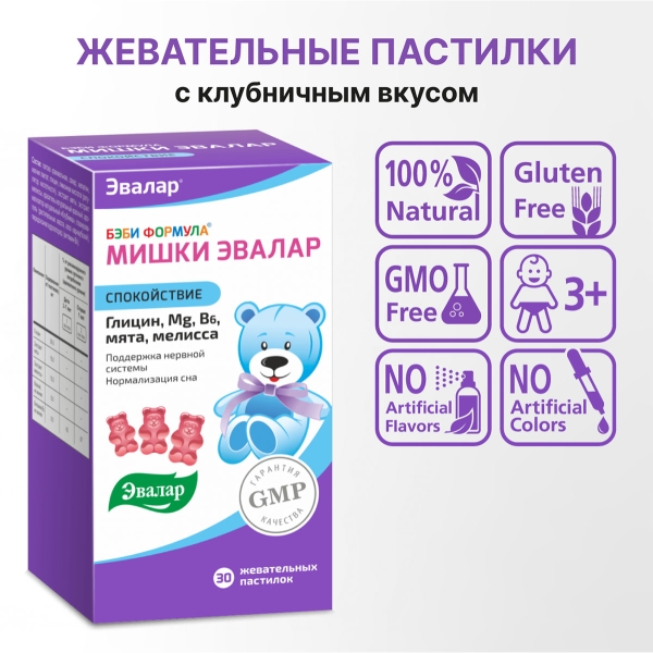 ✓ Купить Эвалар Бэби Формула Мишки Спокойствие пастилки жевательные, №30 можно на сайте, в мобильном приложении и в аптеках Вита