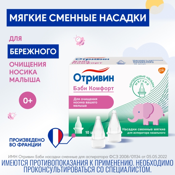 ✓ Купить Отривин Бэби Комфорт мягкие сменные насадки для назального аспиратора, №10 можно на сайте, в мобильном приложении и в аптеках Вита