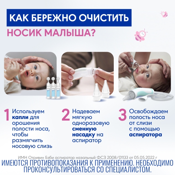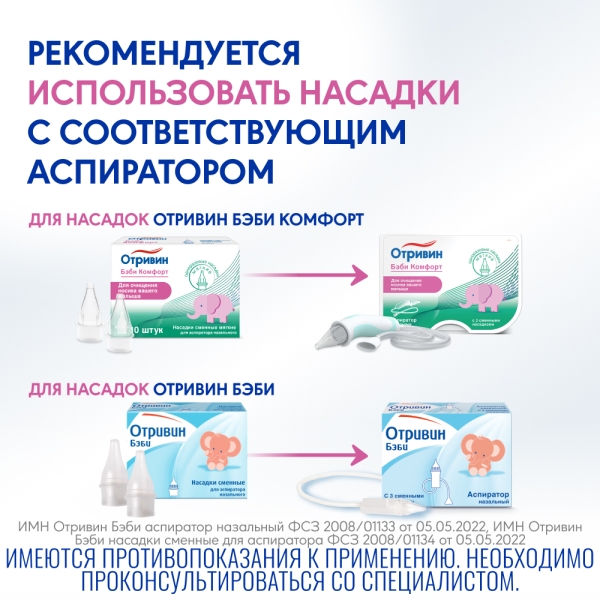 ✓ Подробная инструкция по применению Отривин Бэби Комфорт мягкие сменные насадки для назального аспиратора, №10