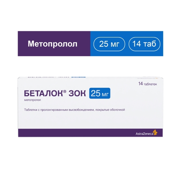 ✓ Купить Беталок Зок таблетки с пролонг. высв. п/о 25мг, №14 можно на сайте, в мобильном приложении и в аптеках Вита