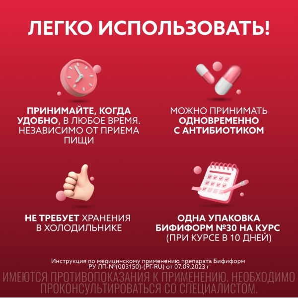 ✓ Подробная инструкция по применению Бифиформ капсулы кишечнораст., №30