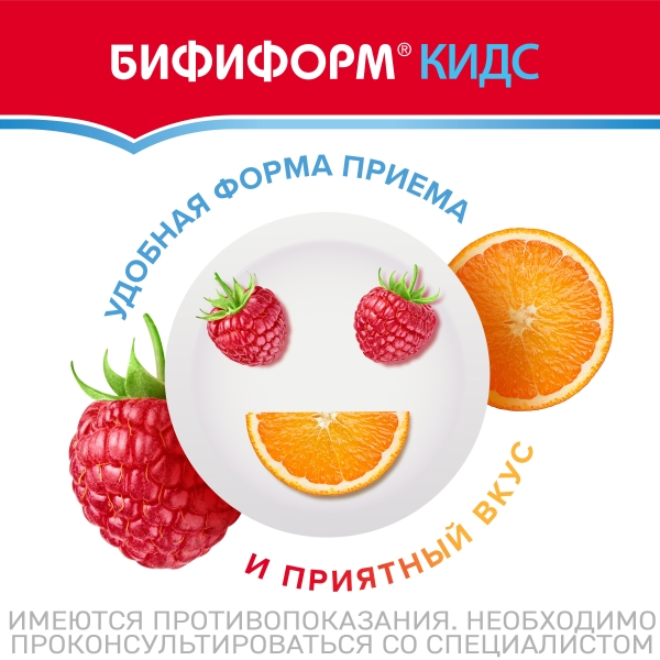 ✓ Подробная инструкция по применению Бифиформ Кидс таблетки жевательные Апельсин - малина, №20