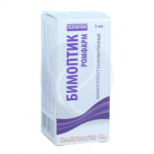 Биматопрост хорошо проникает в роговицу и склеру человека in vitro. После инстилляции взрослым системная экспозиция биматопроста очень мала, накопления препарата не отмечено. После введения одной капли препарата БИМОПТИК РОМФАРМ в оба глаза один раз в день в течение двух недель концентрация в крови достигла максимума через 10 минут после введения дозы, а в течение 1,5 часа этот показатель оказался ниже уровня определения (0,025 нг / мл). Средние значения Сmах и AUC 0-24 часов были примерно одинаковыми на 7-й и 14-й день - примерно 0,08 нг/мл и 0,09 нг*ч/мл, соответственно, что указывает на то, что стабильная концентрация биматопроста была достигнута в течение первой недели инстилляций.