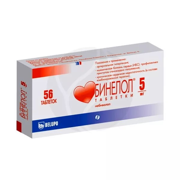 ✓ Цена на Бинелол таблетки 5мг, №56 указана на сайте и в мобильном приложении