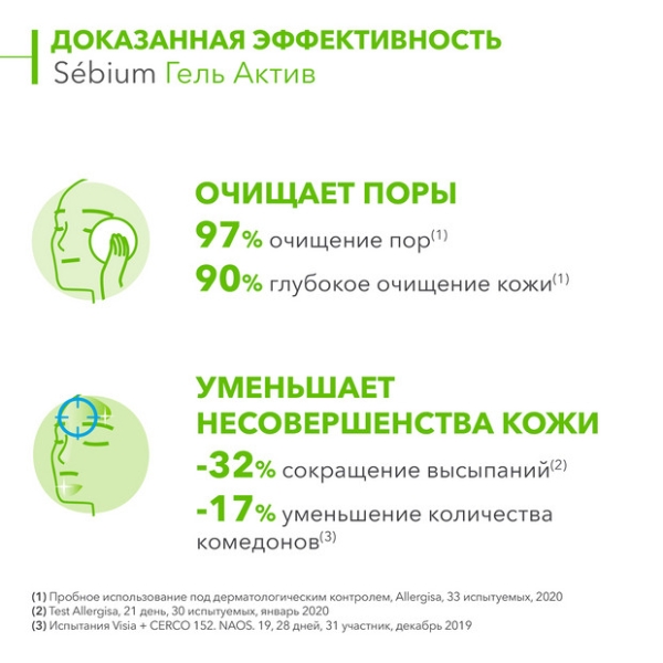 Пенящийся гель Sebium Актив можно использовать утром и / или вечером, пока несовершенства не исчезнут.