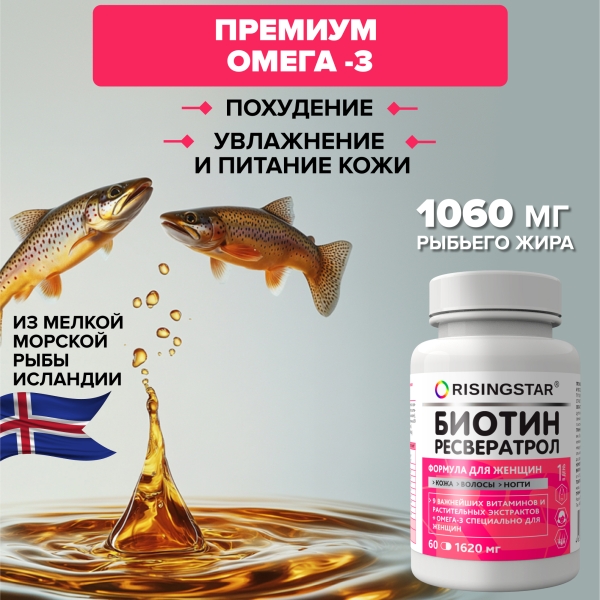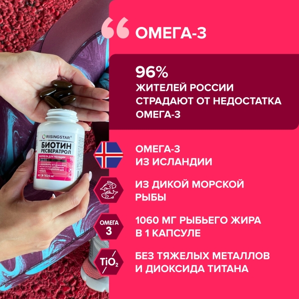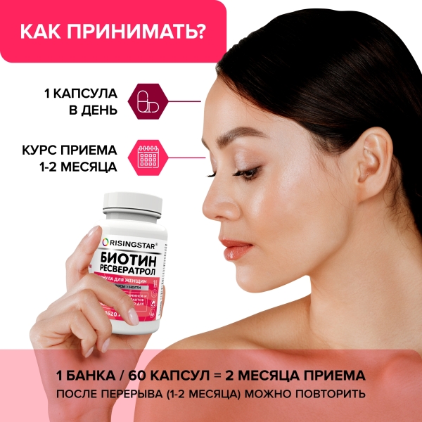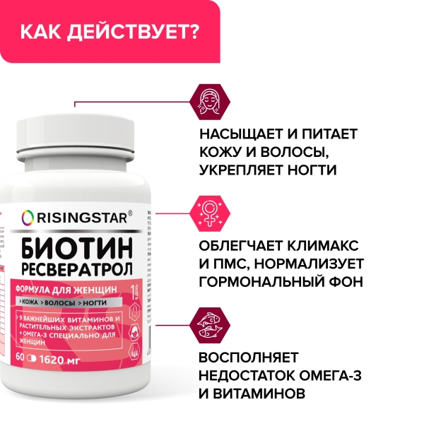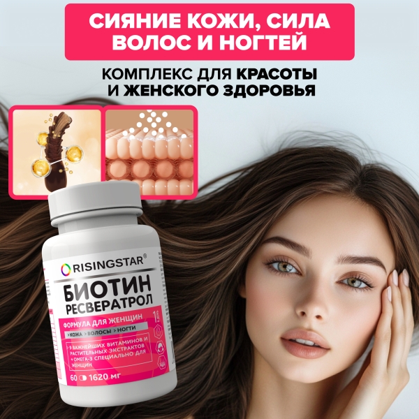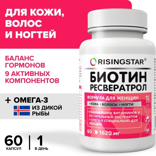 ✓ Цена на Risingstar Биотин Ресвератрол формула для женщин капсулы, №60 указана на сайте и в мобильном приложении